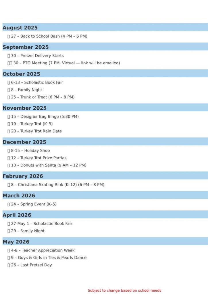 OCS PTO Calendar of Events
